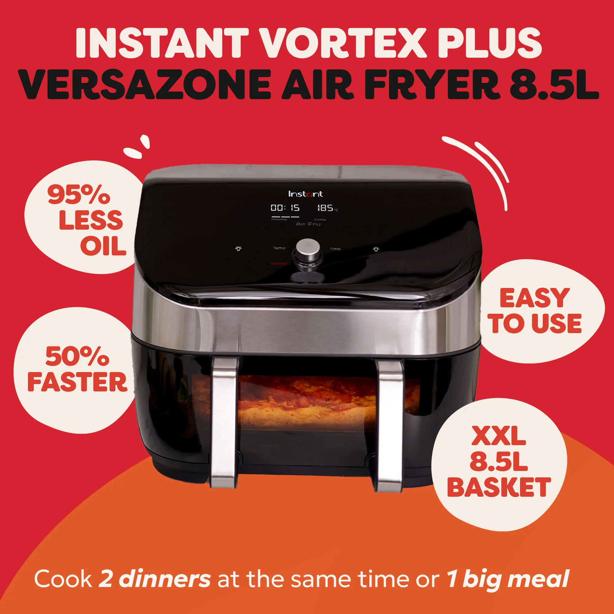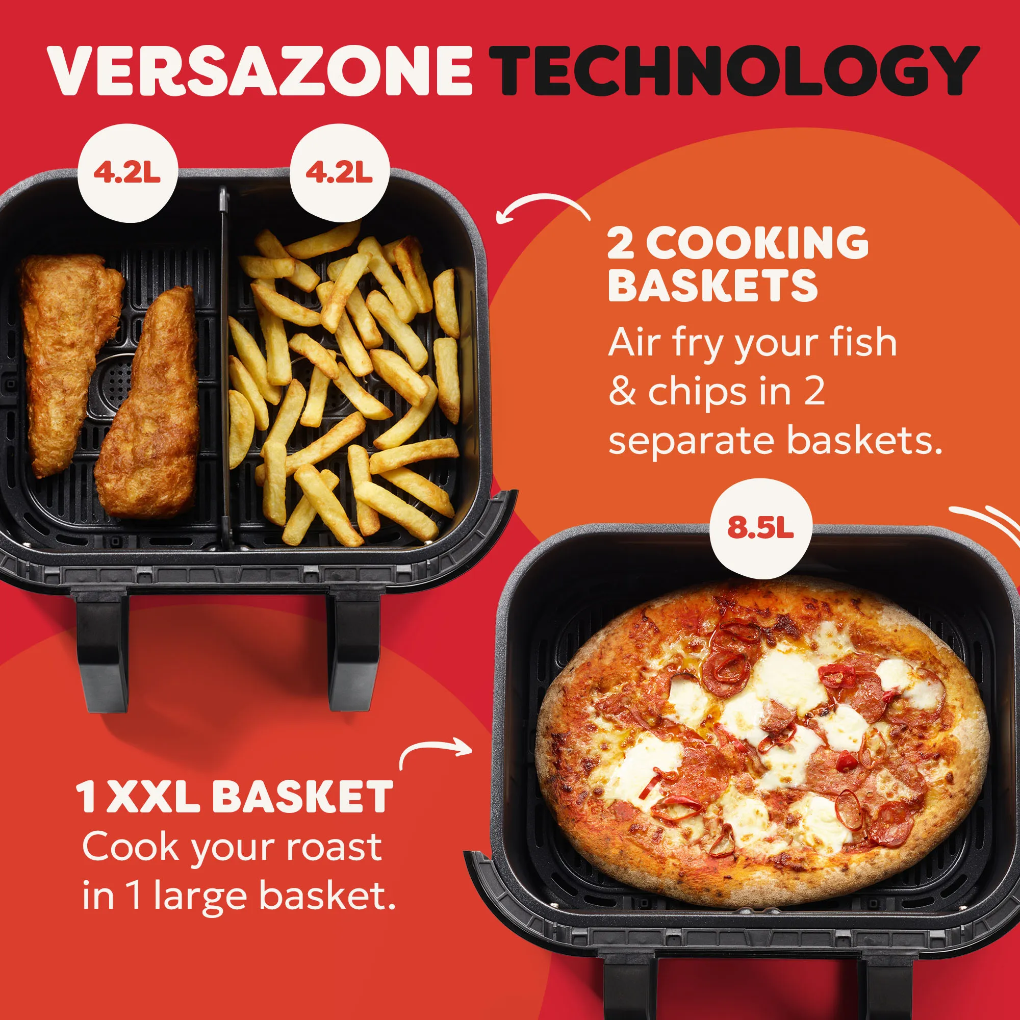 - Cooking Zones: Single 8.5L or Dual 4.25L quart zones (VersaZone™ Technology)